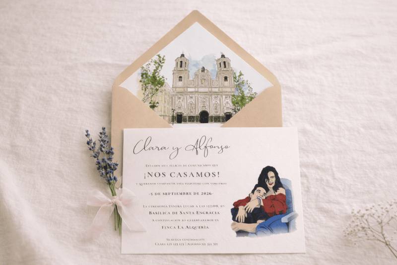 Especialistas en papelería nupcial, en Con Amore crean invitaciones, sobres, marcasitios, libros de firmas y detalles decorativos que combinan ilustración, diseño y artesanía. Cada pieza es única, adaptada a vuestro estilo y temática, con la posibilidad de incorporar ilustraciones personalizadas que aportan un toque artístico y emocional. Además, ofrecen servicios de decoración y coordinación, asegurando que cada rincón de vuestra boda transmita coherencia estética y calidez, desde la ceremonia hasta el último brindis.