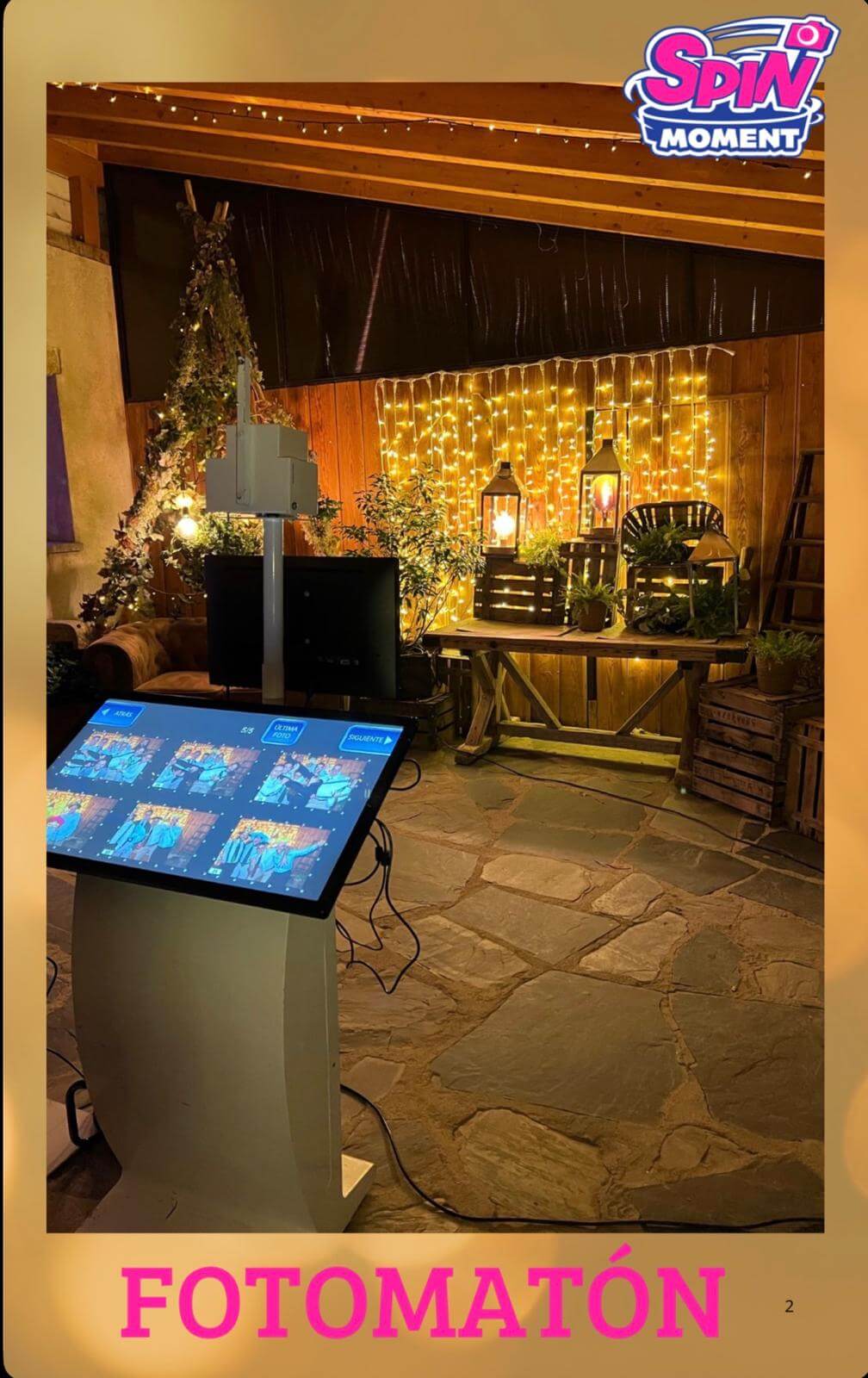 Contamos con diversos servicios: Fotomatones de pantalla dual, teléfono audiolibro para un recuerdo de tus invitados, 360º (plataforma y aérea), hora loca con precios loquísimos, algodón dulce para tus invitados más golosos y palomitas para los que tienen un gusto salado.