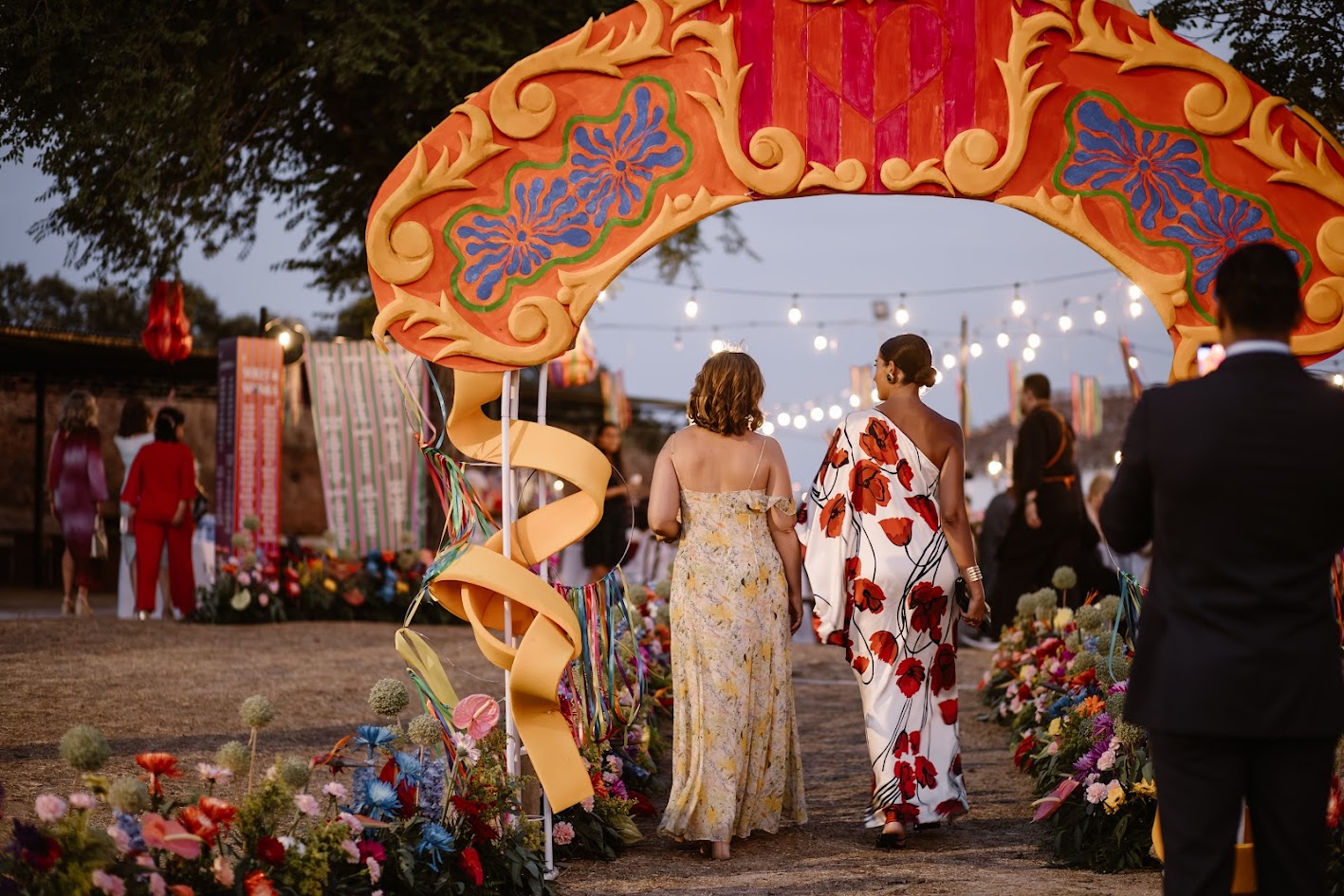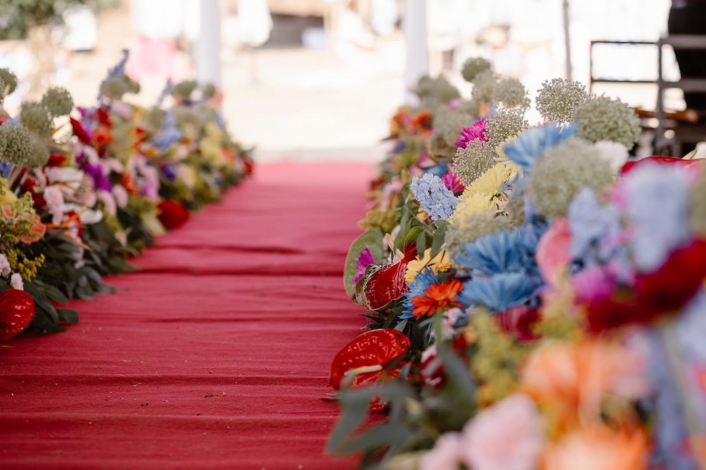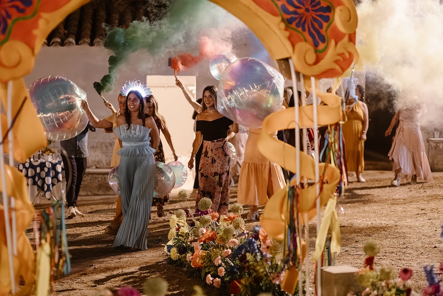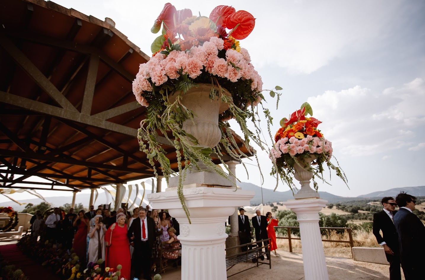 Querían una boda que inspirara vida, color y alegría, y así fue. Para llegar a la finca, los testigos lo hicieron en los tradicionales carros del Milagro, los mismos que decoraron su madre y su tía en la última romería.