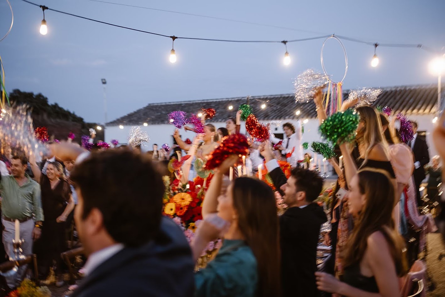 Y para terminar, lo hicieron por todo lo alto: una orquesta, porque ambos están muy vinculados a la vida de pueblo —Teresa a Ventas y Guille a Robledo de Chavela— y querían que su boda se sintiera como eso, una auténtica fiesta de pueblo, alegre, cercana y llena de vida.
